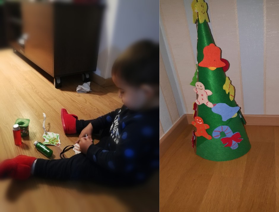 El pequeño caballero disfrutó mucho pintando y jugando en la sala de psicomotricidad con las hojas secas y por supuesto con su amiga Leyre que le acompaña en estas aventuras de Casa Grande, además, llegó emocionado a casa con su corona del otoño.