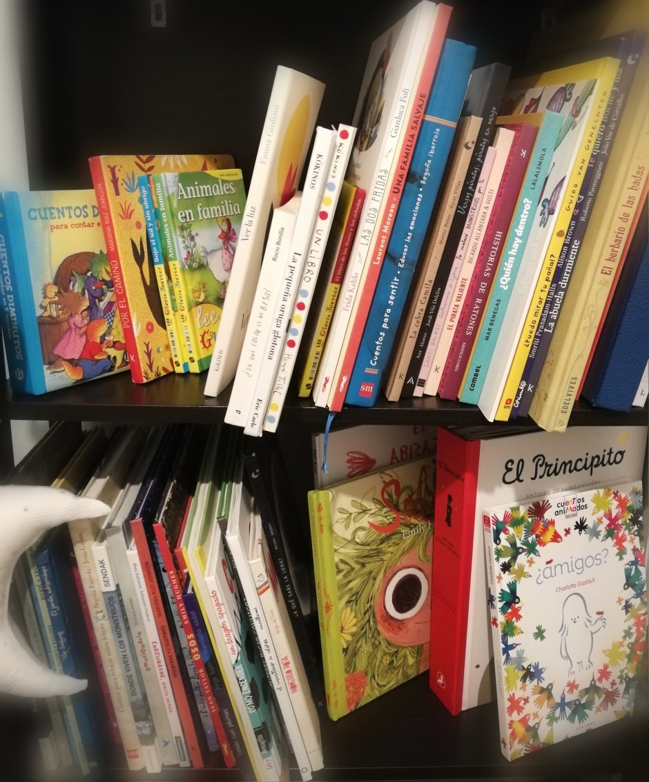 - Tener los cuentos a su alcance, que ellos puedan cogerlos, elegir el que le apetece leer en ese momento y luego poder dejarlo en su sitio sin ayuda.